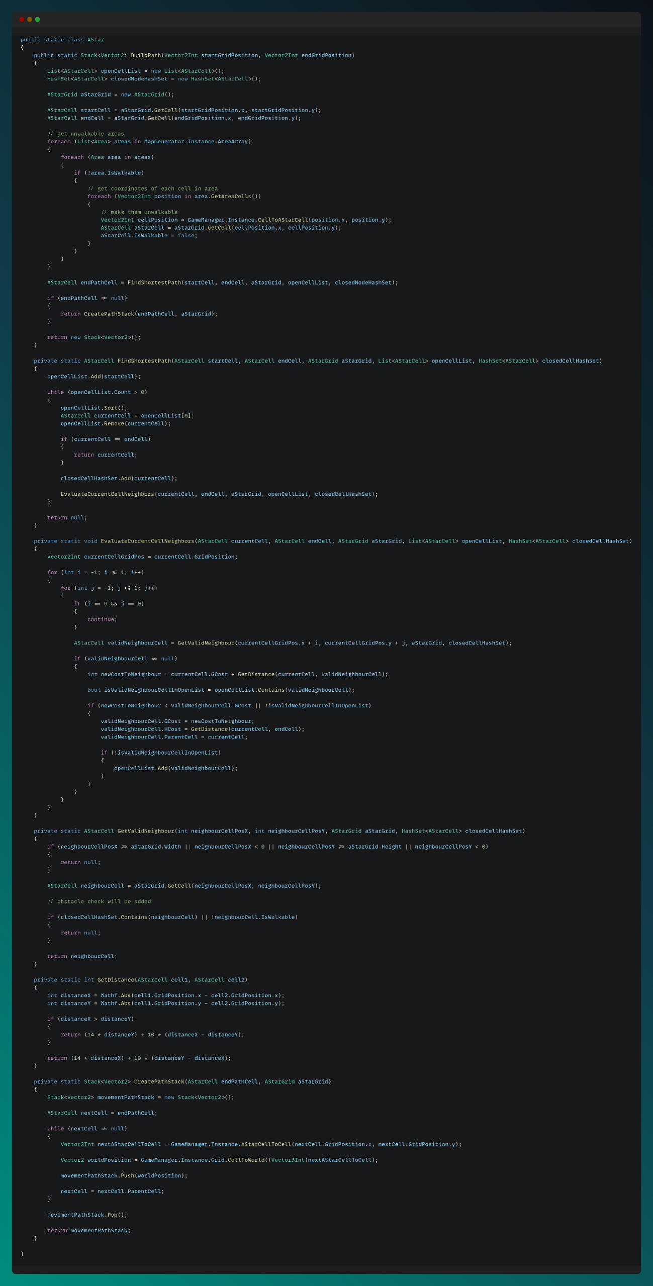 This script is an example for implementing the A* Pathfinding algorithm in my custom made grid system.