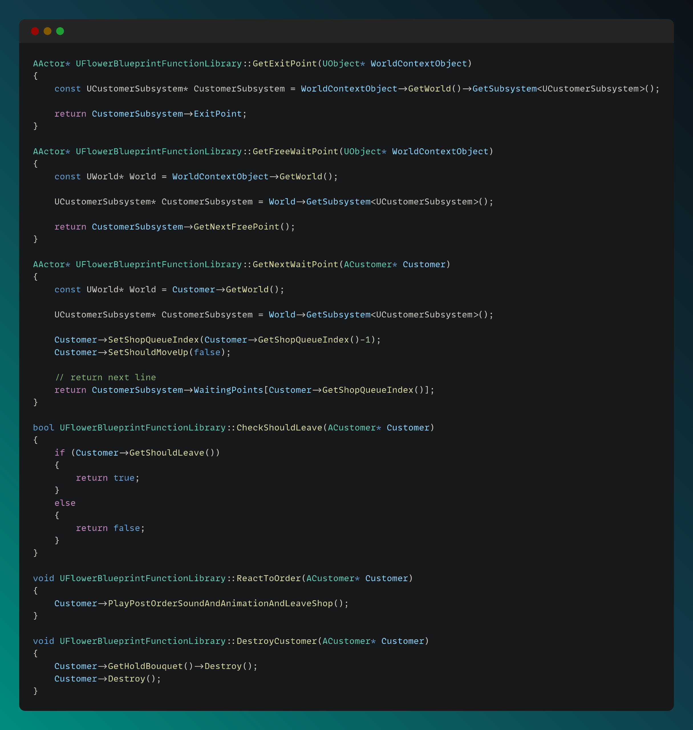 Customer Behavior - Unreal Engine - code snippets