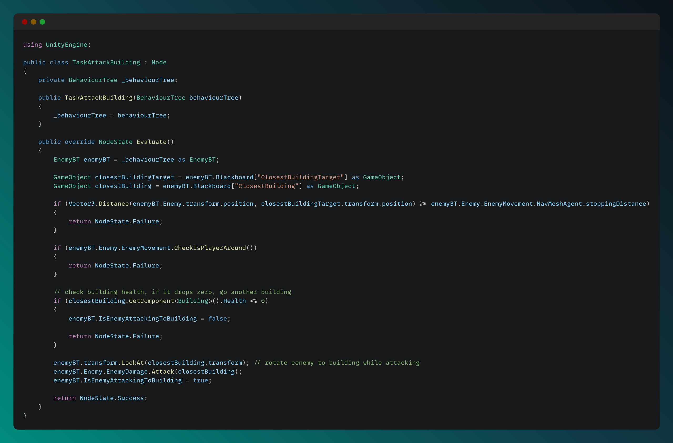 Enemy Behavior - Tower Defense Unity Engine - code snippets